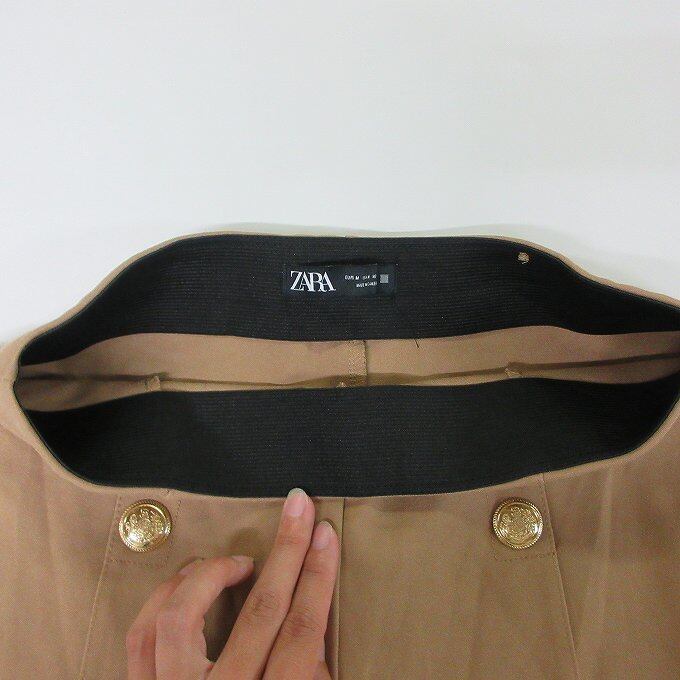 人気の■ZARA ザラ パンツ ボトム ストレッチ スキニー 金ボタンハイウエスト ベージュ ウィメンズ サイズM ウエストゴム[BY1883です。