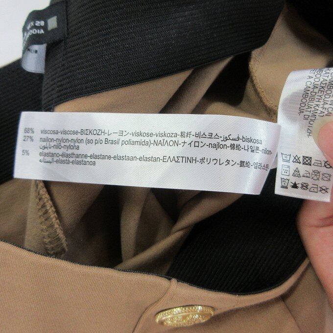 ■ZARA ザラ パンツ ボトム ストレッチ スキニー 金ボタンハイウエスト ベージュ ウィメンズ サイズM ウエストゴム[BY1883