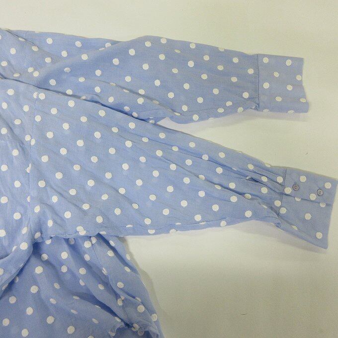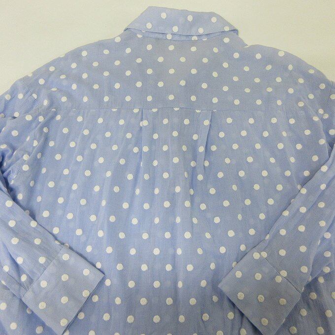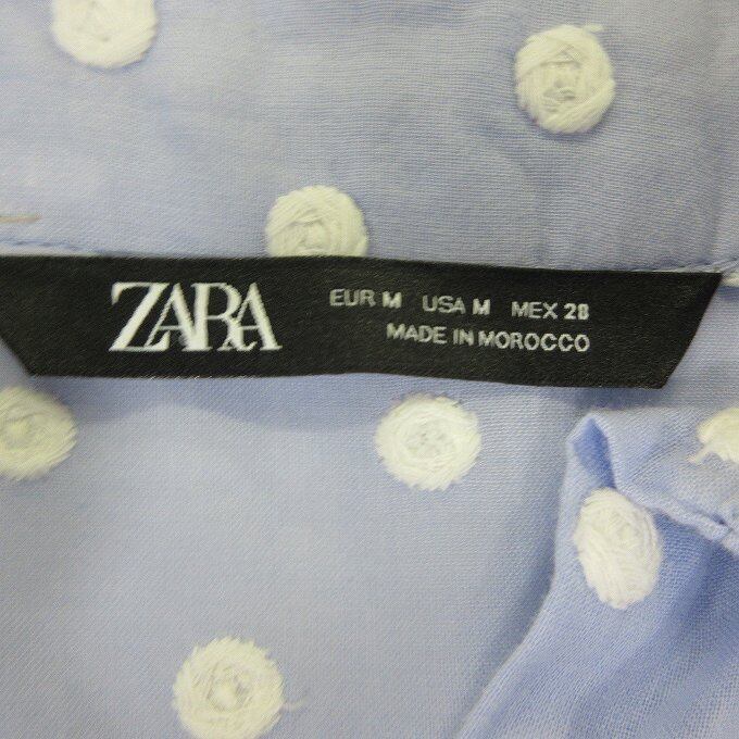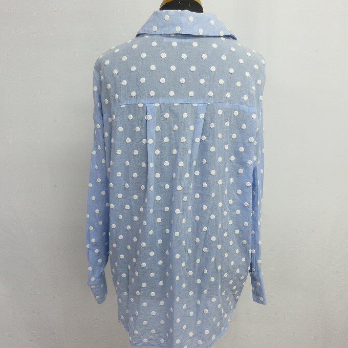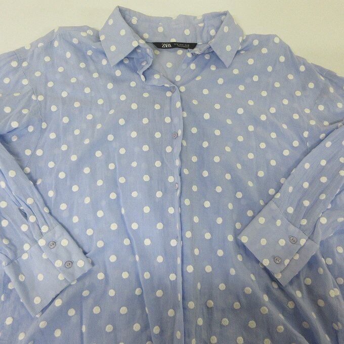 人気の■ZARA ザラ シャツ ドット柄 水玉 ブルー 長袖 ボタンダウン サイズM コットン ウィメンズ ドロップショルダー 刺繍[BY1903です。