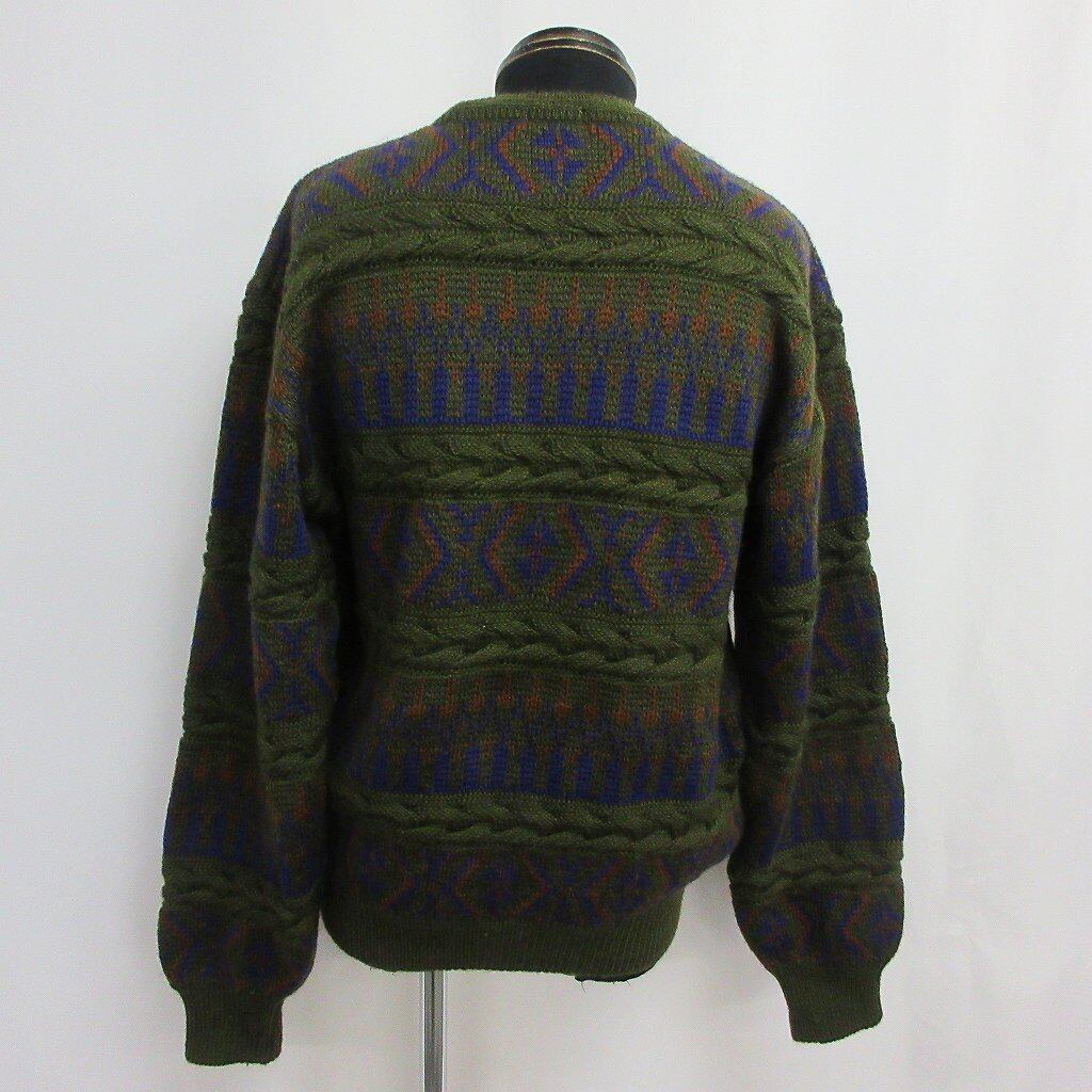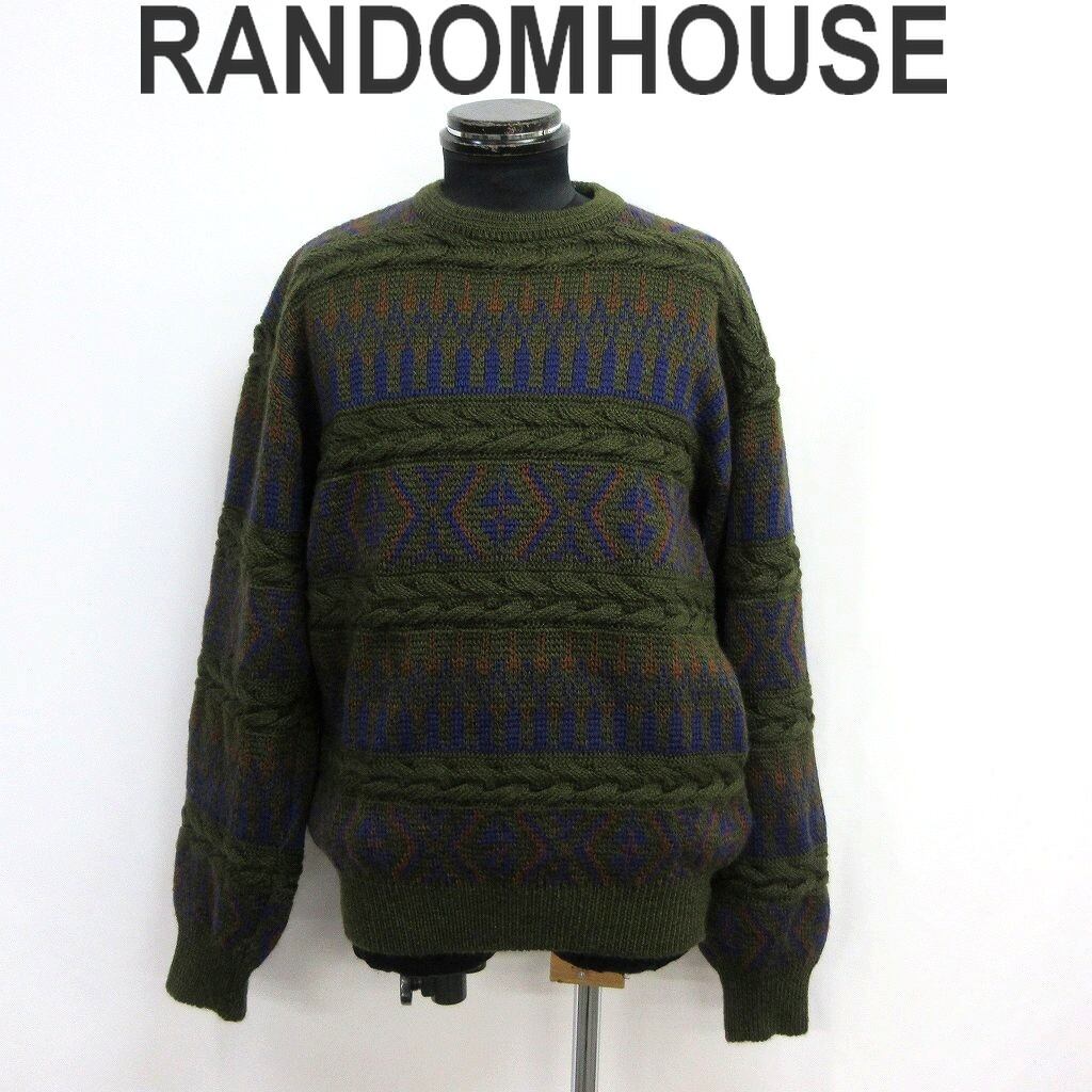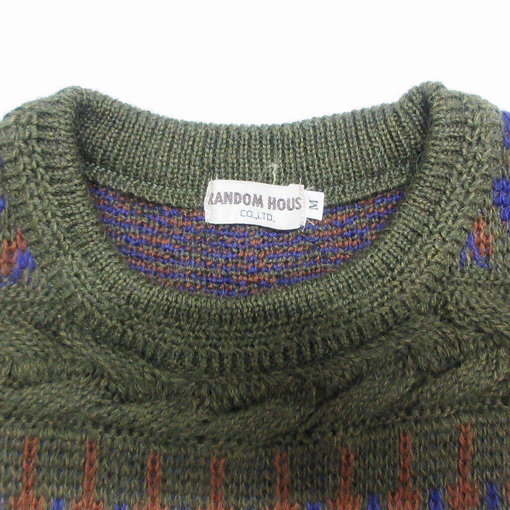 人気の■RANDOMHOUSE ランダムハウス セーター ニット 丸首 長袖 防寒 レトロ柄 スモークグリーン サイズM ウール メンズ[BY2142です。