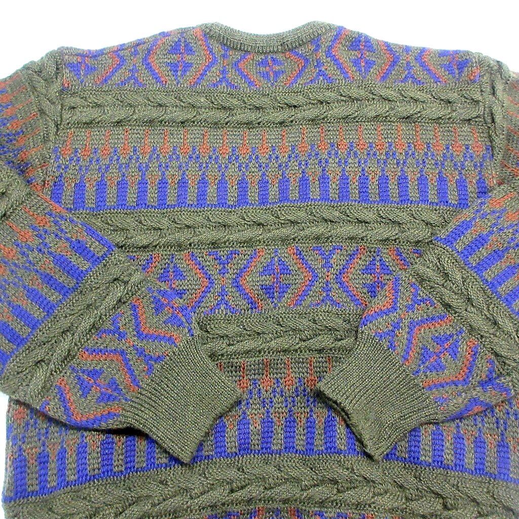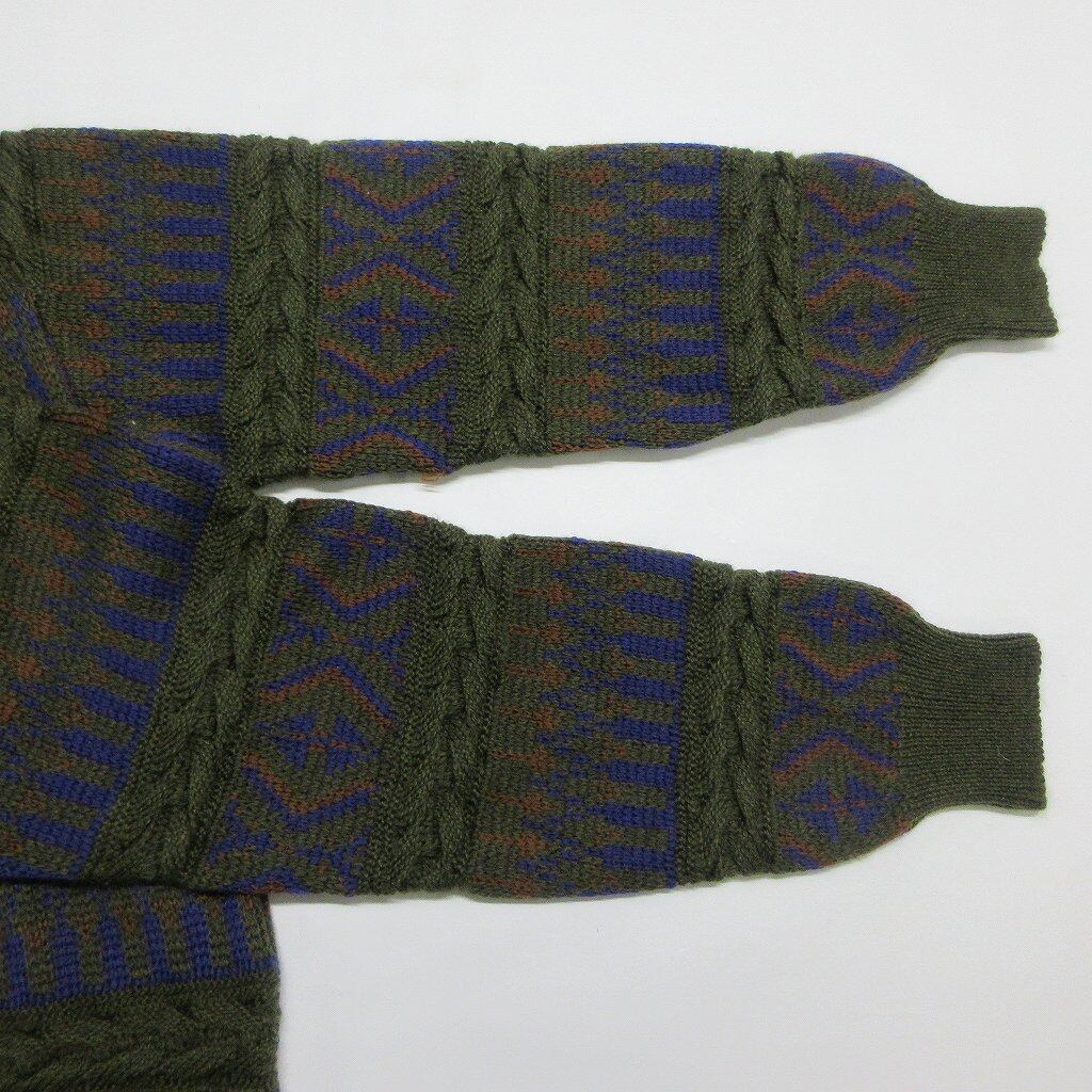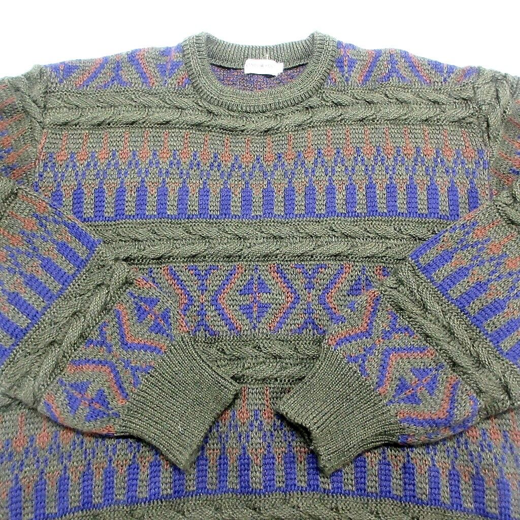 人気の■RANDOMHOUSE ランダムハウス セーター ニット 丸首 長袖 防寒 レトロ柄 スモークグリーン サイズM ウール メンズ[BY2142です。
