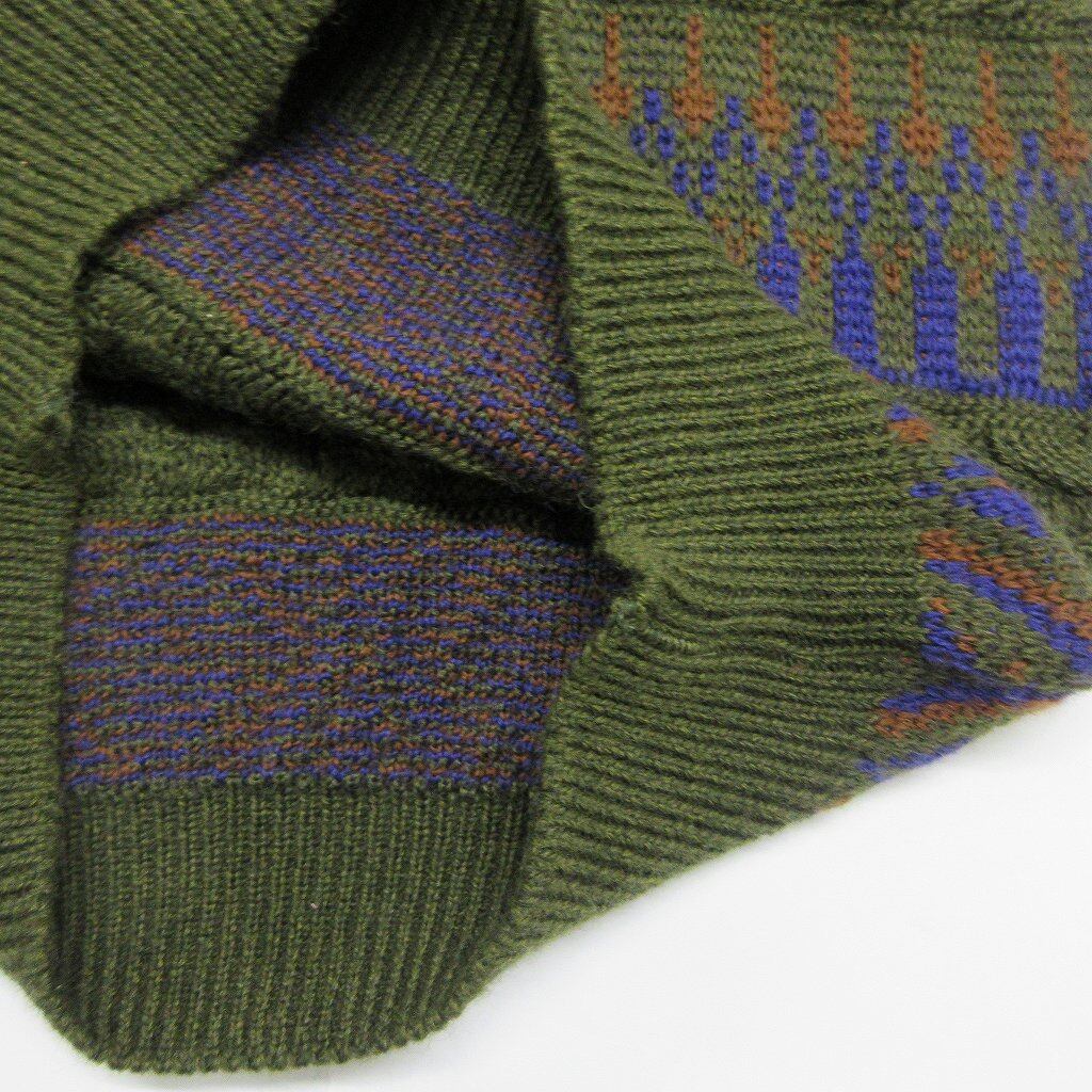 ■RANDOMHOUSE ランダムハウス セーター ニット 丸首 長袖 防寒 レトロ柄 スモークグリーン サイズM ウール メンズ[BY2142