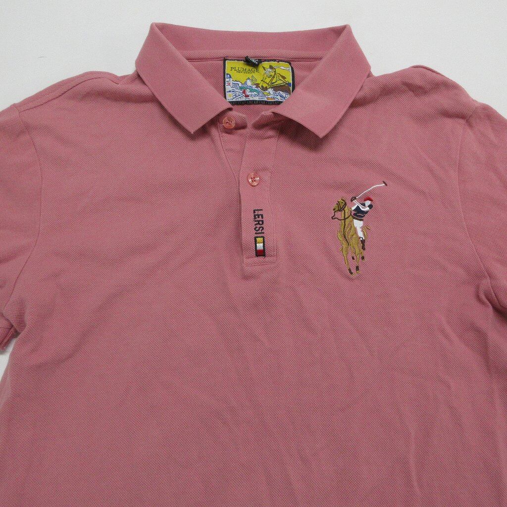 人気の■PLUMAGE プルナ—ジュ ポロシャツ メンズ サイズL コーラル 半袖 刺繍[BY2145です。