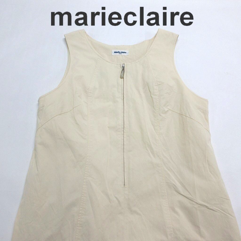 ■marieclaire マリクレール ワンピース ジャンパースカート クリーム センタージップ ノースリーブ ロング丈 日本製 サイズ9号[BY2166