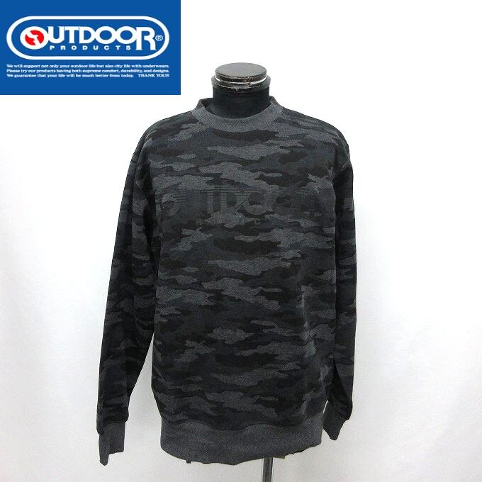 人気の■OUTDOOR PRODUCTS アウトドアプロダクツ メンズ カモフラ柄 サイズL 丸首 長袖 フロントロゴ[BY1716です。