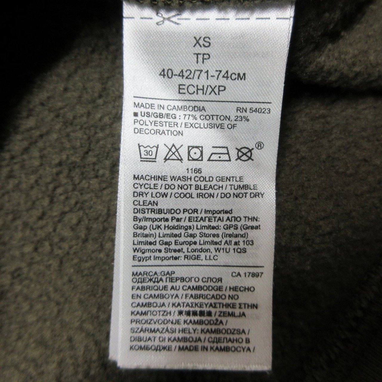■GAP ギャップ トレーナー パーカー カーキ 刺繍ロゴ サイズXS 裏起毛 長袖 コットン メンズ ユニセックス[BY2235
