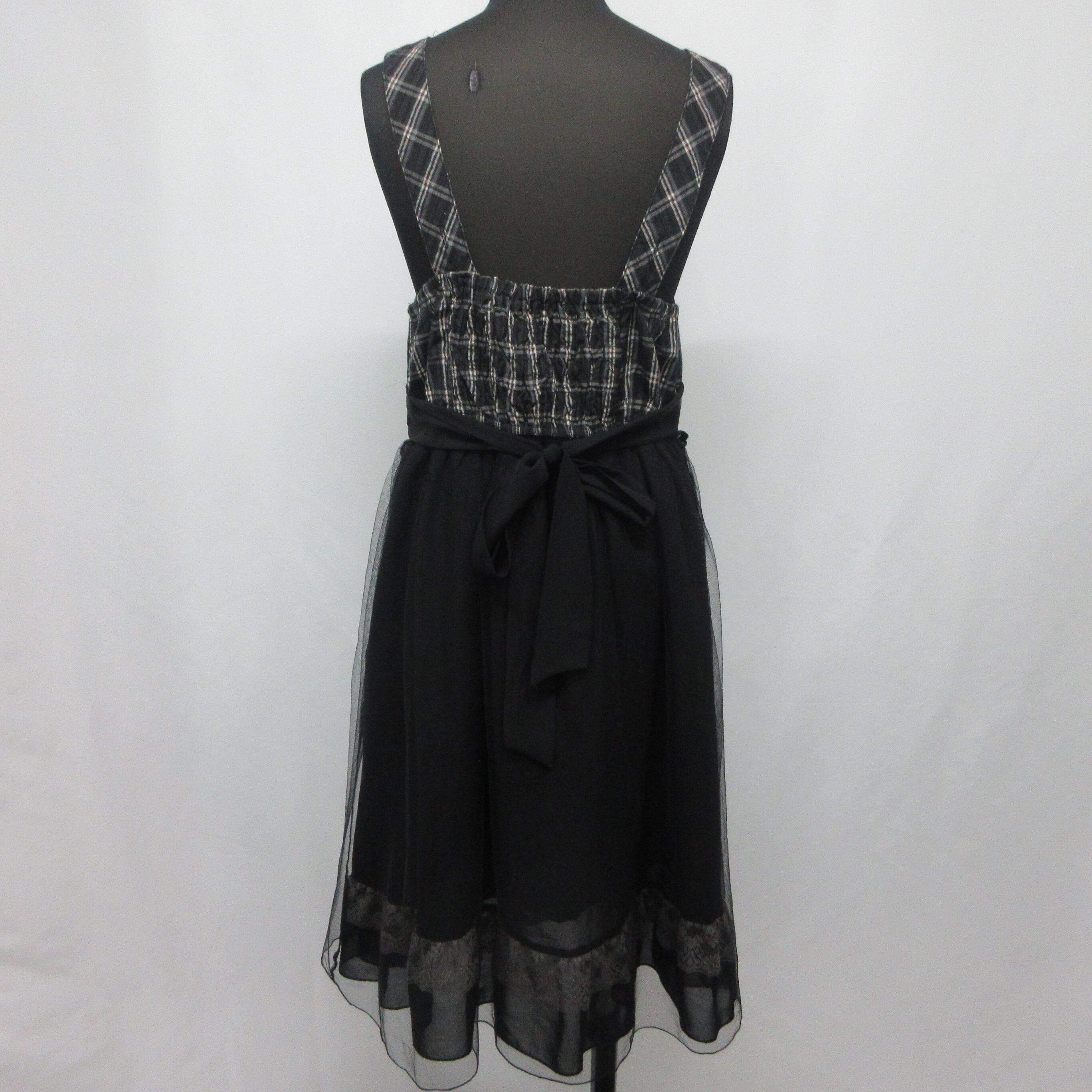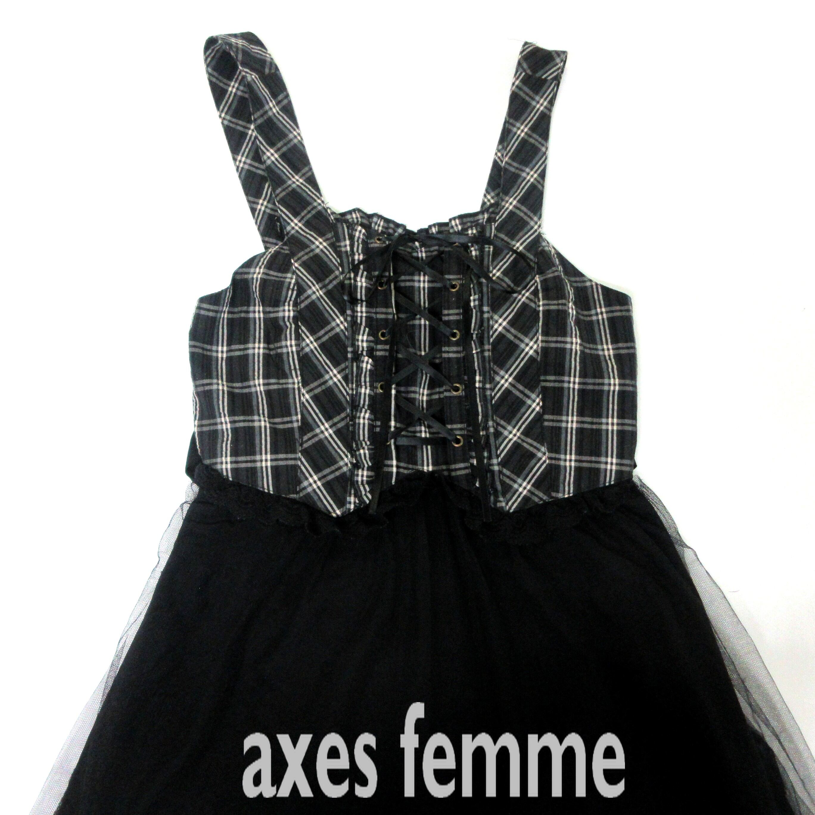 人気の■axes femme アクシーズファム ワンピース リボン チュールスカート ブラック チェック柄 レースアップ サイズM ウィメンズ[BY1818です。