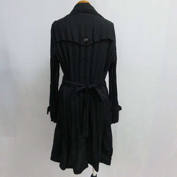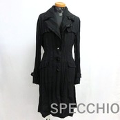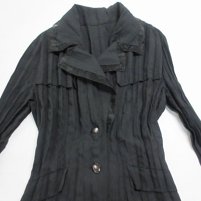 人気の■SPECCHIO スペッチオ プリーツコート長袖 ボタン Aライン 襟レース サイズ42 スタイルアップ ブラック 大きいサイズ[BY2064です。