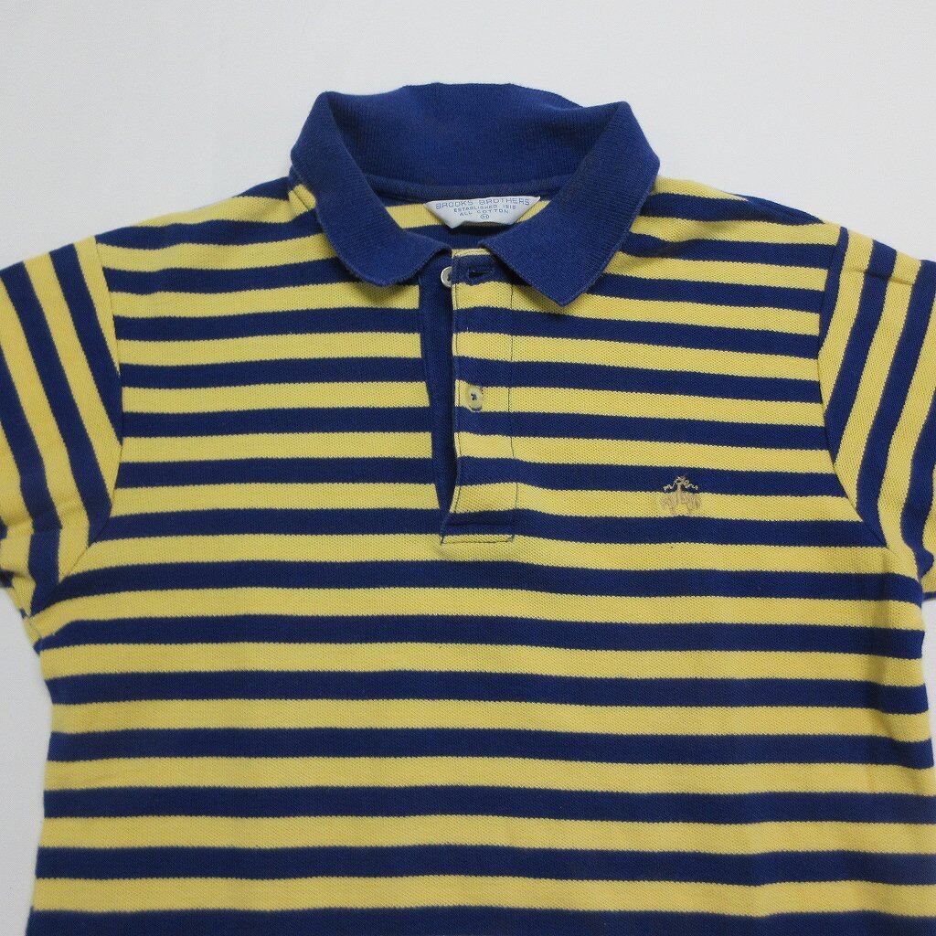 ■BrooksBrothers ブルックスブラザーズ ポロシャツ ボーダー 刺繍ロゴ サイズL 半袖 コットン カジュアル ラガーシャツ[BY2171