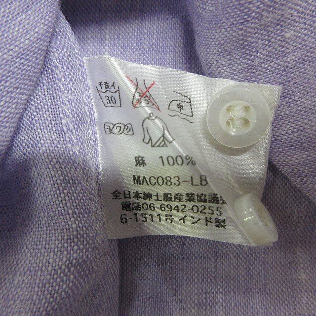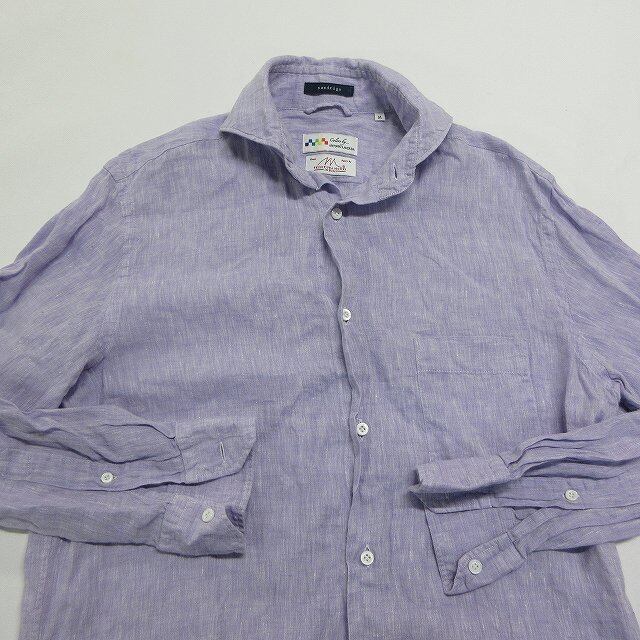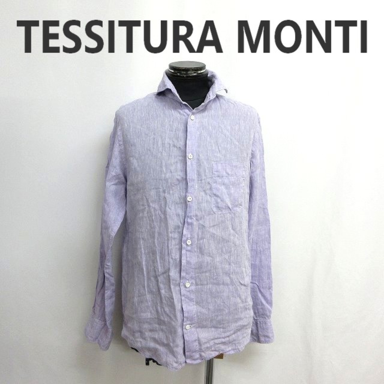 人気の■TESSITURA MONTI ANTONIOLAVERDA サイズM イタリアシャツ ネルシャツ パープル M 麻100% ボタンダウン[BY2340です。