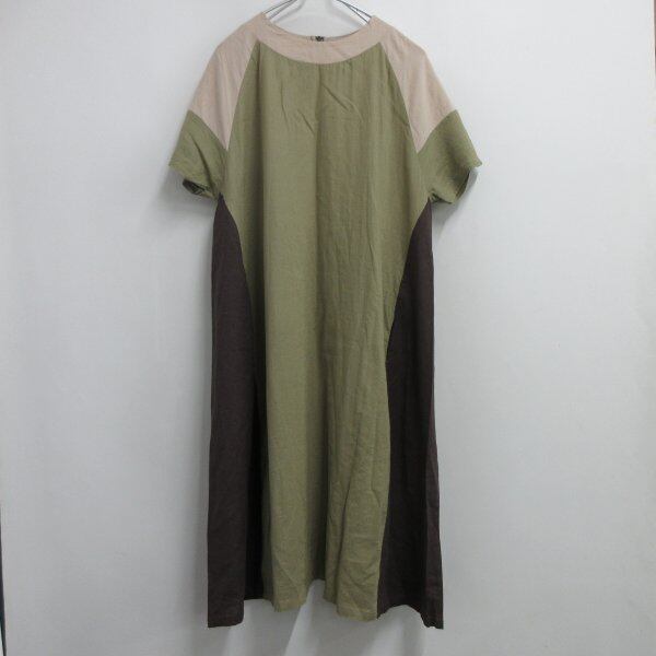 ▲ マルチカラー 半袖 Aライン ワンピース リネン レーヨン サイドポケット付き [KD0039