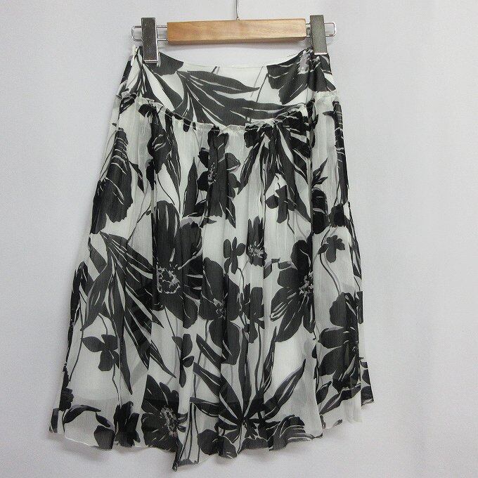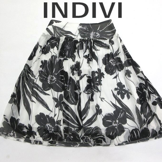 人気の■INDIVI インディヴィ スカート ひざ丈 シフォン 花柄 モノクロ サイドジップ サイズ05 フォーマル フレアスカート レディース[BY2067です。