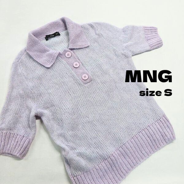 人気の■MNG マンゴ ハーフボタン ニット 半袖 パープル S [KD0062です。