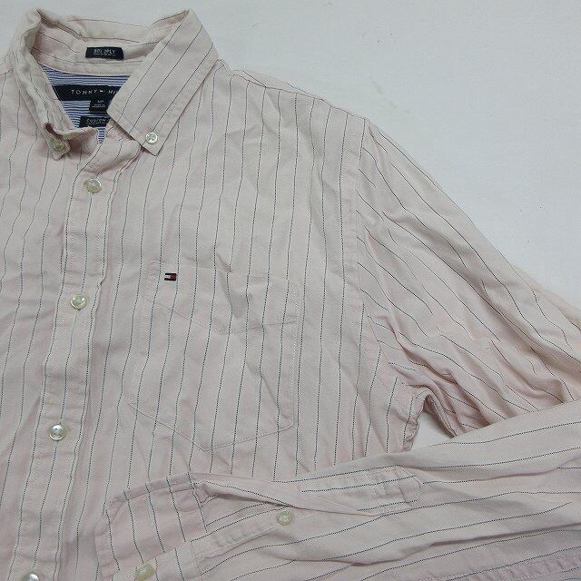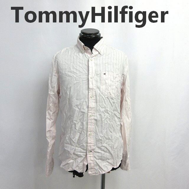 人気の■TommyHilfiger トミーヒルフィガー 長袖シャツ ストライプ ピンク CUSTOMFIT サイズS 80s2PLY コットン メンズ[BY2441です。