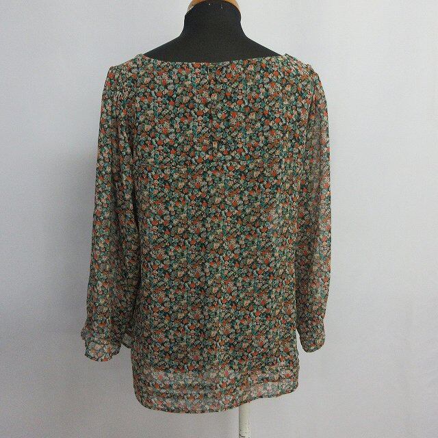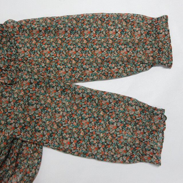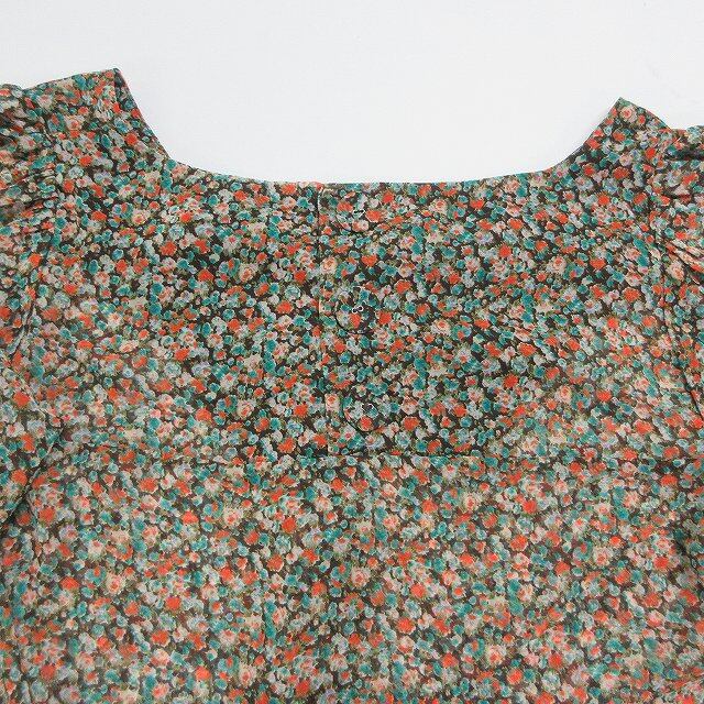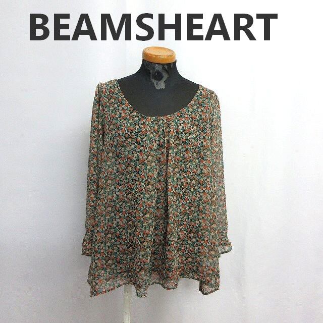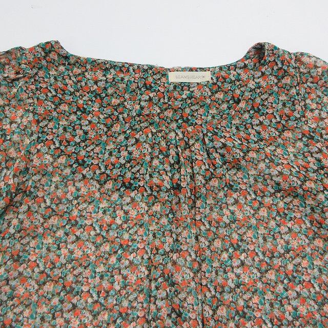 ■BEAMSHEART ビームスハート ブラウス シフォン小花柄 ブラウン レディース サイズF デコルテ シースルー[BY2443