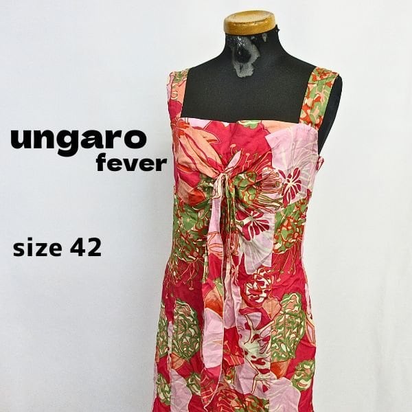 人気の▲ungaro/ウンガロ フィーバー ノースリーブ ワンピース 花柄 総柄 42 シルク [KD0117です。
