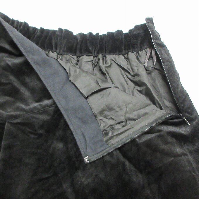 ■Gabardine K.T ギャバジンケーティー スカート ブラック コーデュロイ風 サイズ13号 ひざ丈 サイドジップ フレア 裏地付き[BY2463