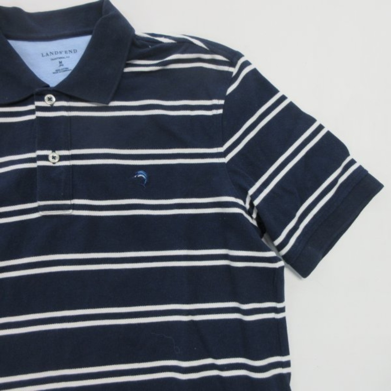 ▲LANDS END/ランズエンド 半袖 ポロシャツ ボーダー M ネイビー [KD0138