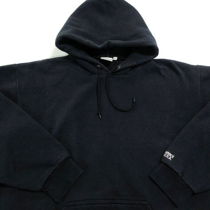 ■AVIREX アヴィレックス パーカー フーディー ネイビー 大きいサイズ sizeXL 長袖 ドロップショルダー 袖ロゴ[BY2519