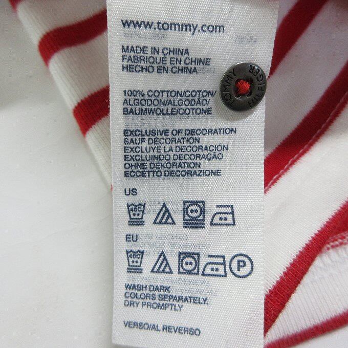 ■TommyHilfiger トミーヒルフィガー トップス ボーダー スクエアネック 七分袖 sizeM レディース ショルダーボタン コットン[BY2526