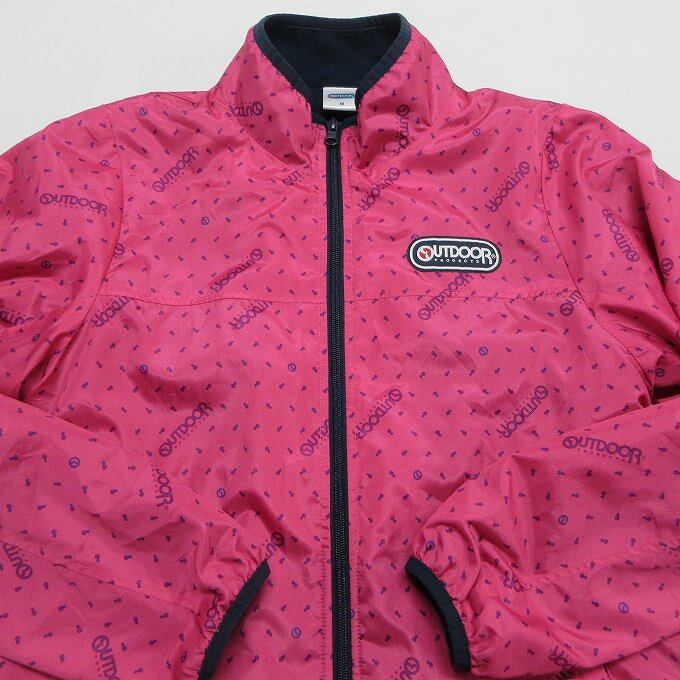 ■OUTDOOR PRODUCTS アウトドアプロダクツ ウィンドブレーカー 総柄 裏起毛 フルジップ 長袖 サイズM ワンポイント[BY2563