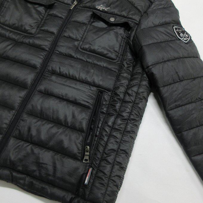 ■GREG NORMAN グレッグノーマン ダウンジャケット ブラック GOLF ゴルフウェア フルジップ ワッペン スポーツ[BY2571