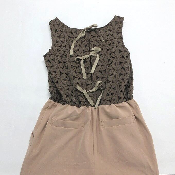 ■JILL STUART ジルスチュアート オールインワン ジャンプスーツ バックリボン 花柄刺繍 二次会 パンツ ピンク ノースリーブ S[BY2573