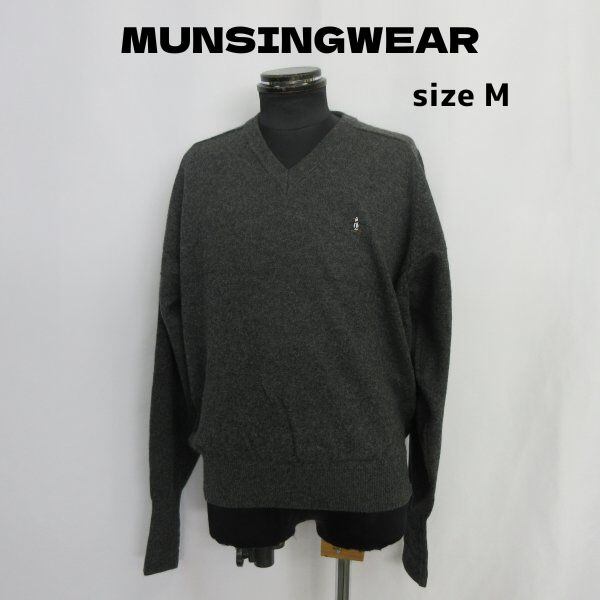 人気の■MUNSINGWEAR/マンシングウエア Vネック ニット モスグレー ゴルフ M [KD0277です。