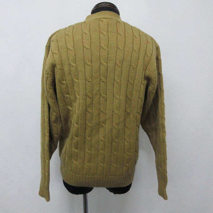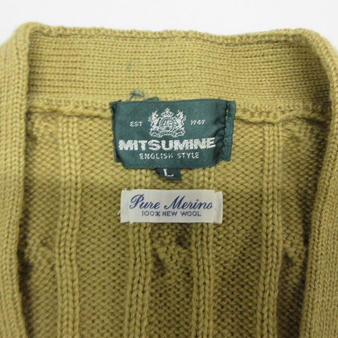 ■MITSUMINE 三峰 ミツミネ ニットカーディガン ピュアメリノ ウール ケーブルニット sizeL カーキ Vネック くるみボタン[BY2490