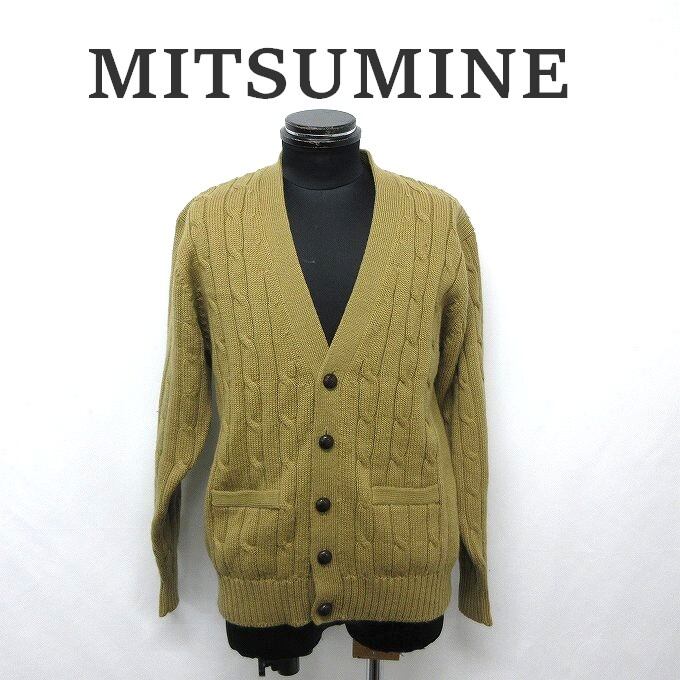 人気の■MITSUMINE 三峰 ミツミネ ニットカーディガン ピュアメリノ ウール ケーブルニット sizeL カーキ Vネック くるみボタン[BY2490です。