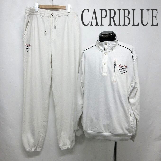 人気の■CAPRIBLUE カプリブルー セットアップ ホワイト ヘンリーネック 異素材MIX ジャージ ウエストゴム サイズ52 CAPRI スポーツ[BY2578です。