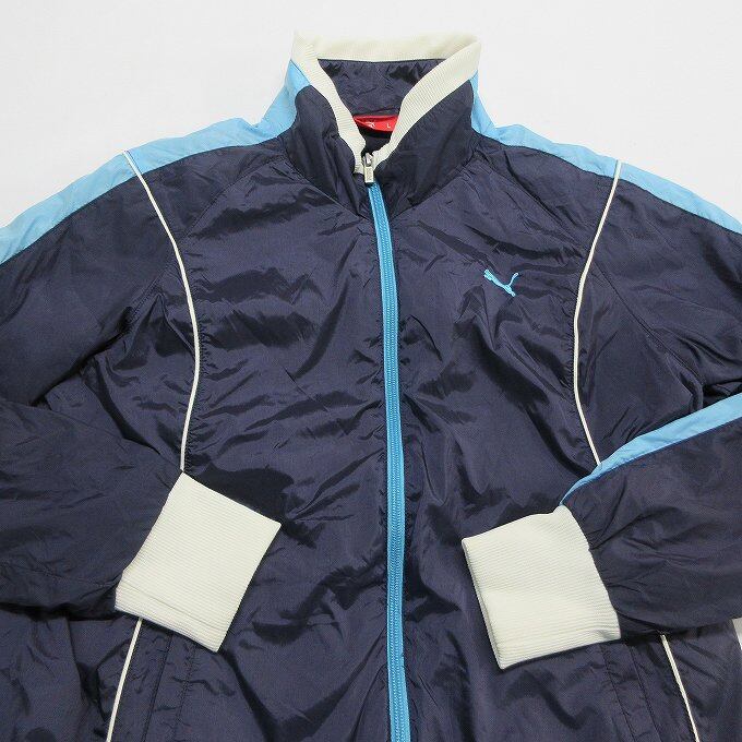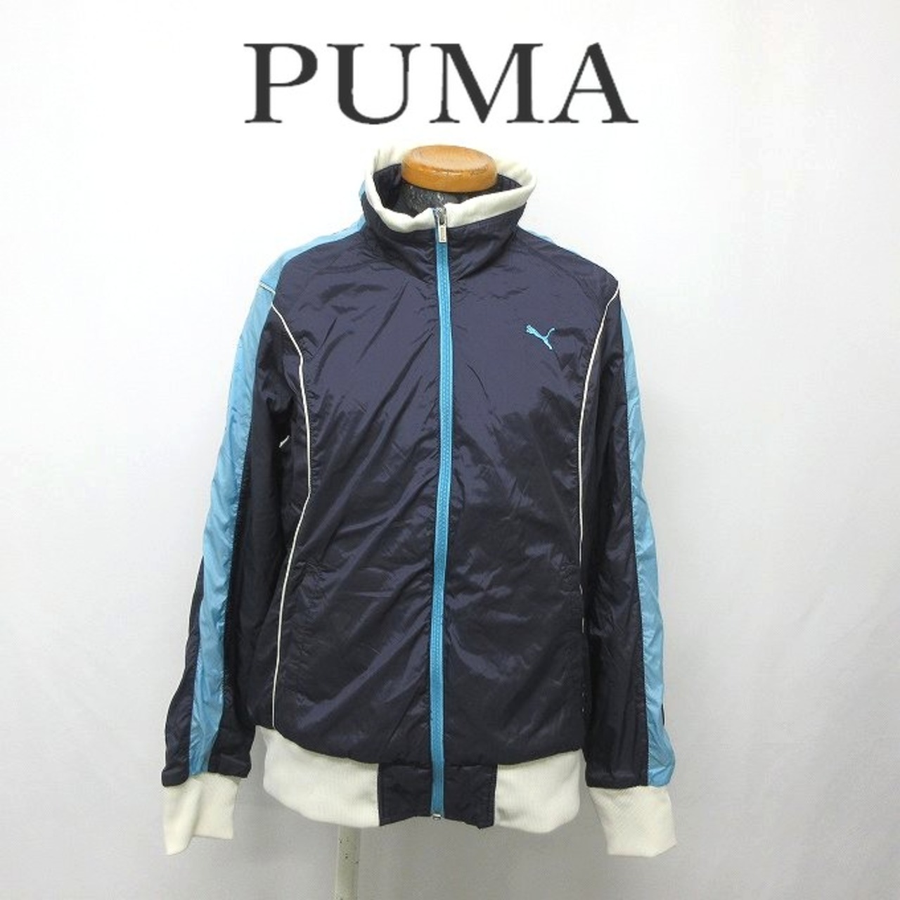人気の■PUMA プーマ トレーナー フルジップ ナイロンジャケット ジップパーカー L レディース 裏起毛 ネイビー スタジャン スポーツ[BY2582です。